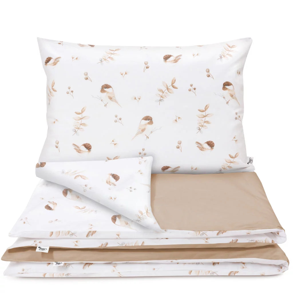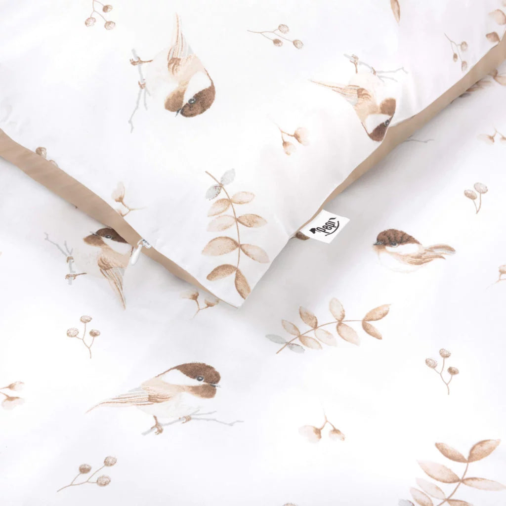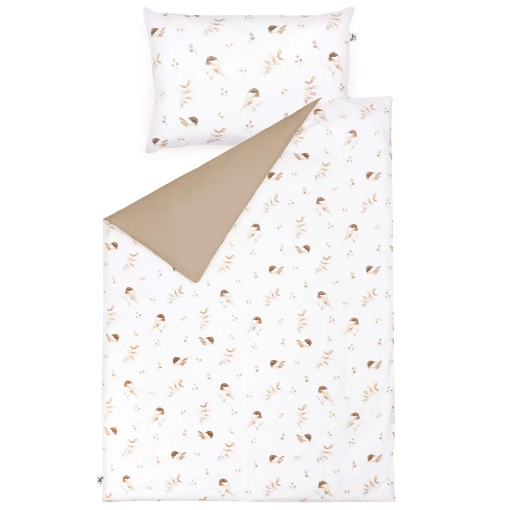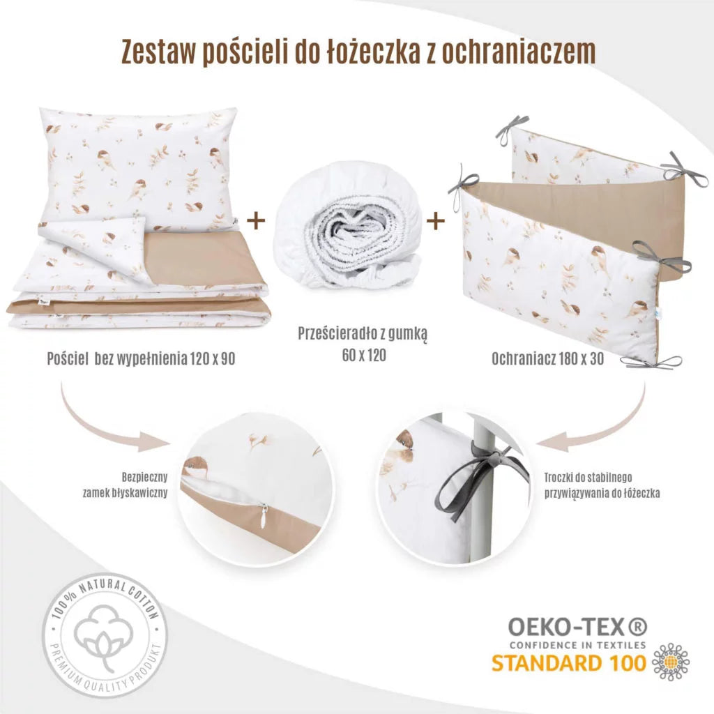 Ágyneműhuzat 4az1-ben - garnitúra kiságyba (90x120) lepedővel és rácsvédővel - Lovely Bird cappucino