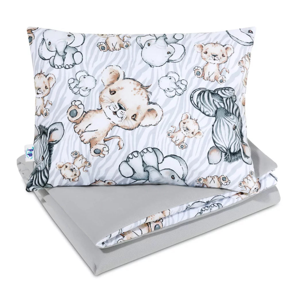 A párnát kifejezetten a legkisebbek kényelmére terveztük – cipzár nélkül készült, így elkerülhető a baba érzékeny bőrének irritációja. Mind a takaró, mind a párna antiallergén szilikon szállal van töltve. Ez a töltet nemcsak biztonságos az allergiás babák számára, hanem a megfelelő hőszabályozásról is gondoskodik, így egész évben garantálja a nyugodt és egészséges alvást.