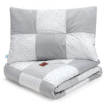 A finom pamutból és puha velvetből készült paplan és párna maximális kényelmet biztosít a gyermeknek. Az antiallergén szálakból készült töltet biztonságos a kicsi érzékeny bőre számára.
