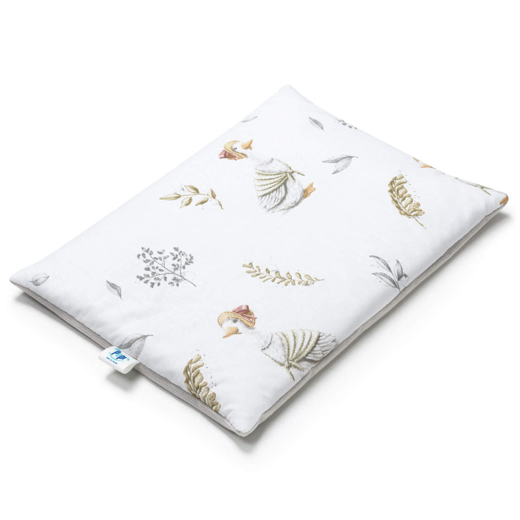 A finom töltetű párna pótolhatatlan kiegészítő a kiságyban való szunyókálások vagy a friss levegőn tett pihentető séták során. Puhaságának és kellemes tapintásának köszönhetően minden helyzetben kényelmet és komfortot biztosít a kicsinek.