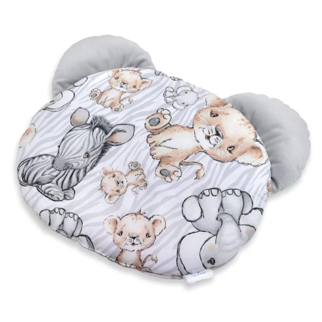 Puha velvetből készült, a párna gyengéd a gyermek bőréhez és kényelmes alvást biztosít neki. Lapos formája ideális csecsemők számára, mivel nem terheli a gerincet és biztosítja a fej helyes helyzetét.