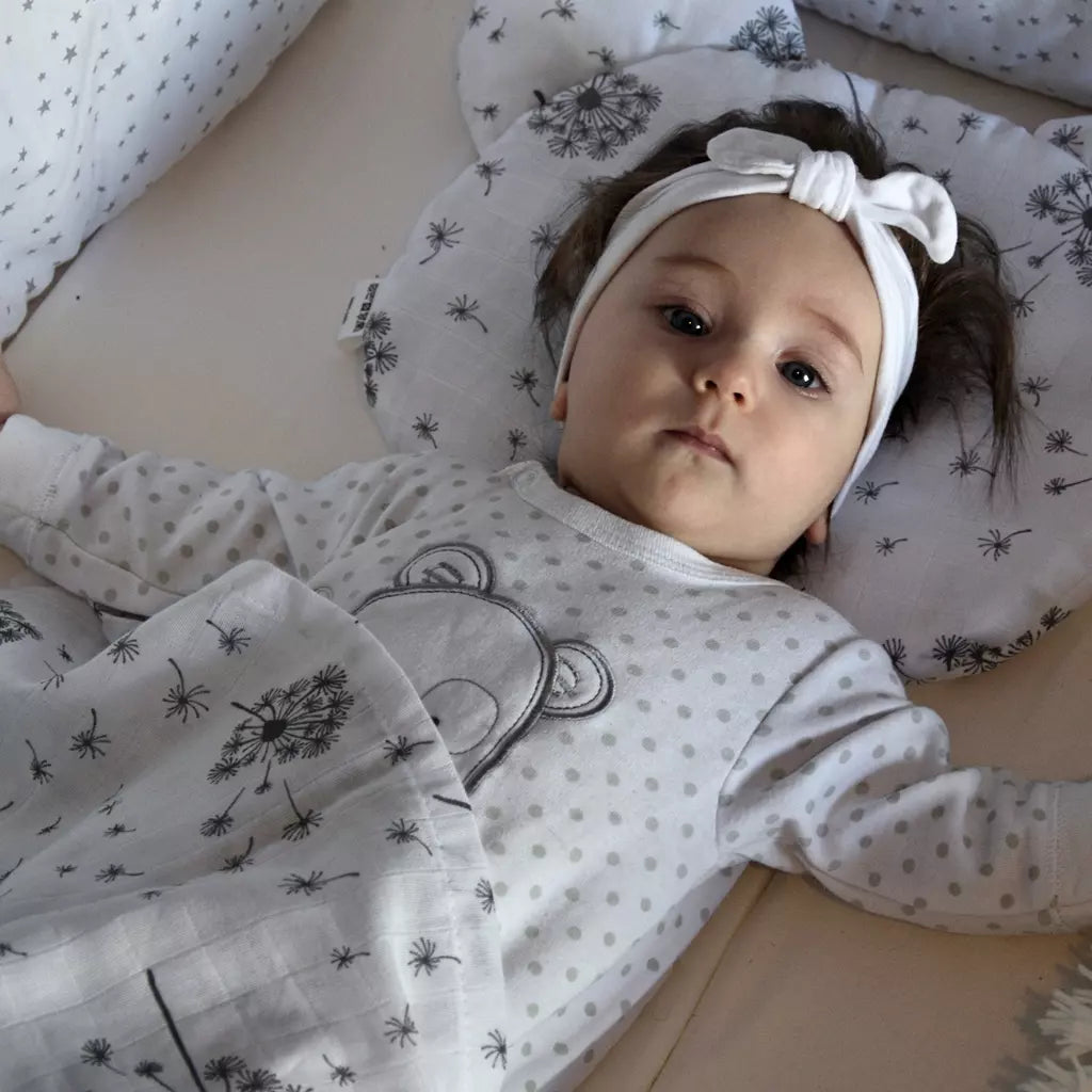 Képzeld el, hogy sétálsz egy napsütéses napon – szeretnéd megóvni a gyermeked érzékeny bőrét a sugaraktól, de félsz, hogy egy vastag takaró alatt melege lesz? Vagy hirtelen szükség van a pelenkázásra kevésbé komfortos körülmények között? Esetleg egy pillanatnyi diszkrét szoptatásra a parkban? Muszlin kendőnk (vagy ahogy egyes anyukák jobban szeretik, a többfunkciós muszlin pelenka) megoldja ezeket a problémákat! Ideális 75x100 cm-es méreteinek és rendkívüli könnyedségének köszönhetően használhatod légáteresztő takaróként a babakocsira vagy autósülésre (szúnyoghálóként is funkcionál!), rögtönzött lepedőként a mózeskosárban, gyengéd törölközőként a váratlan bukások után, vagy éppen diszkrét takaróként szoptatás közben. Ez egy igazi must-have, amellyel csökkentheted a magaddal viendő dolgok számát!