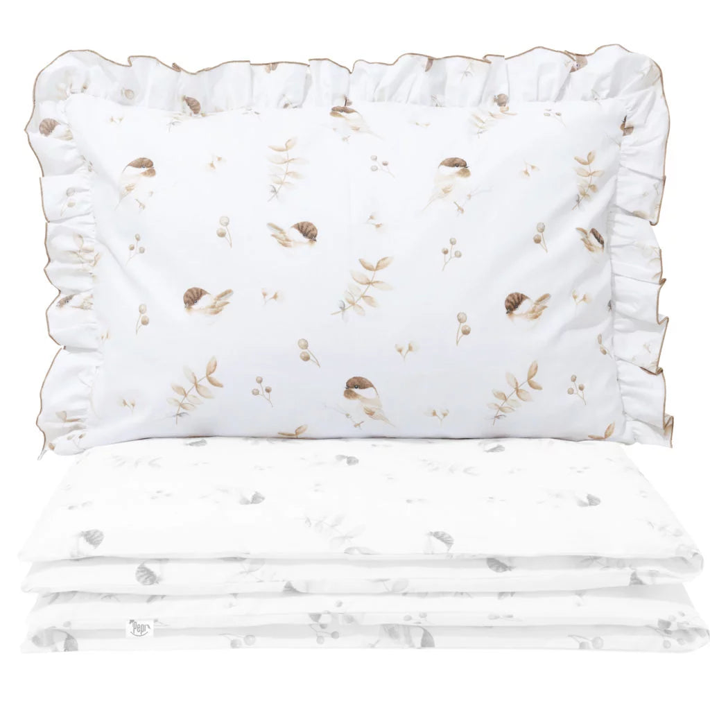 A kiságyba való ágyneműgarnitúra 100% pamutból készült, kiváló antiallergén valamint antibakteriális tulajdonságokkal. Ez az anyag meleget biztosít, ugyanakkor lehetővé teszi a kicsi bőrének szabad lélegzését, kiküszöbölve a túlmelegedés kockázatát. Az ágynemű biztonságos cipzárral van ellátva, amely megfelelően takart, hogy nyugodt alvást és kényelmet biztosítson a legfiatalabb felhasználónak.