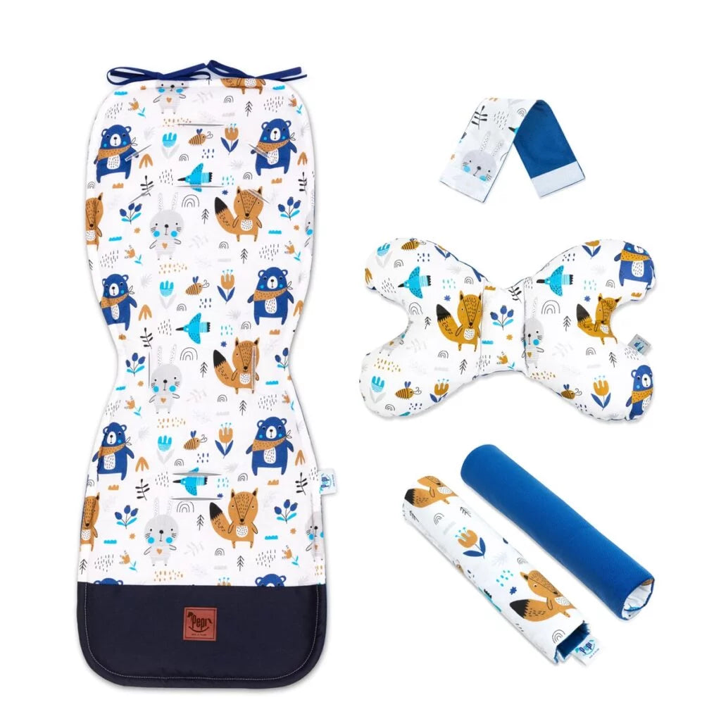 Babakocsi betét 5az1-ben szett - Blue Bear - pamut/velvet