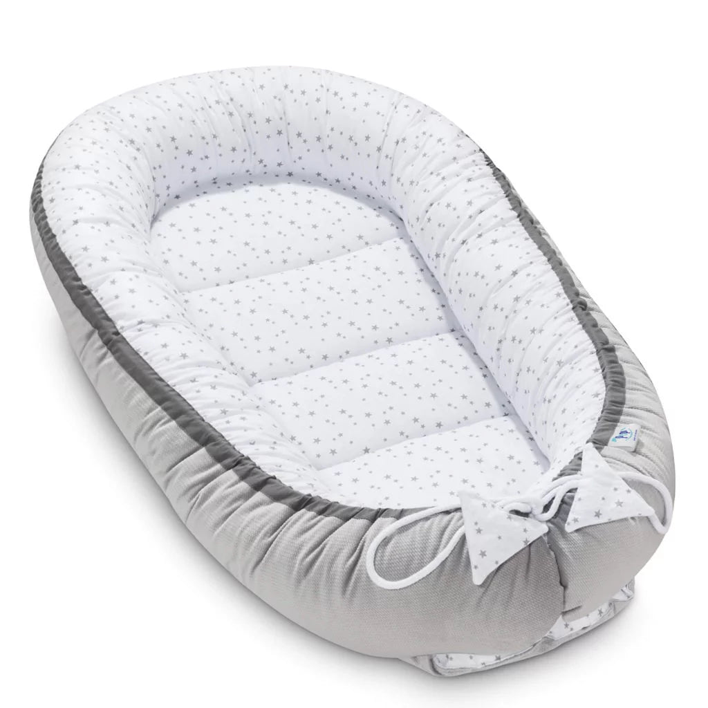 A babafészek egy kényelmes és biztonságos helyet teremt a csecsemő számára, megvédve őt a kiságy kemény elemétől, és minimalizálva a fulladás vagy összenyomódás kockázatát a szülőkkel való közös alvás során. A fészek puha, megemelt oldalai megkönnyítik a gyermek oldalra fektetését, ami különösen fontos a bukás esetén. A fészek kétoldalas kialakítása lehetővé teszi a megjelenés egyszerű megváltoztatását, így esztétikáját saját preferenciáihoz vagy a gyerekszoba berendezéséhez igazíthatja.