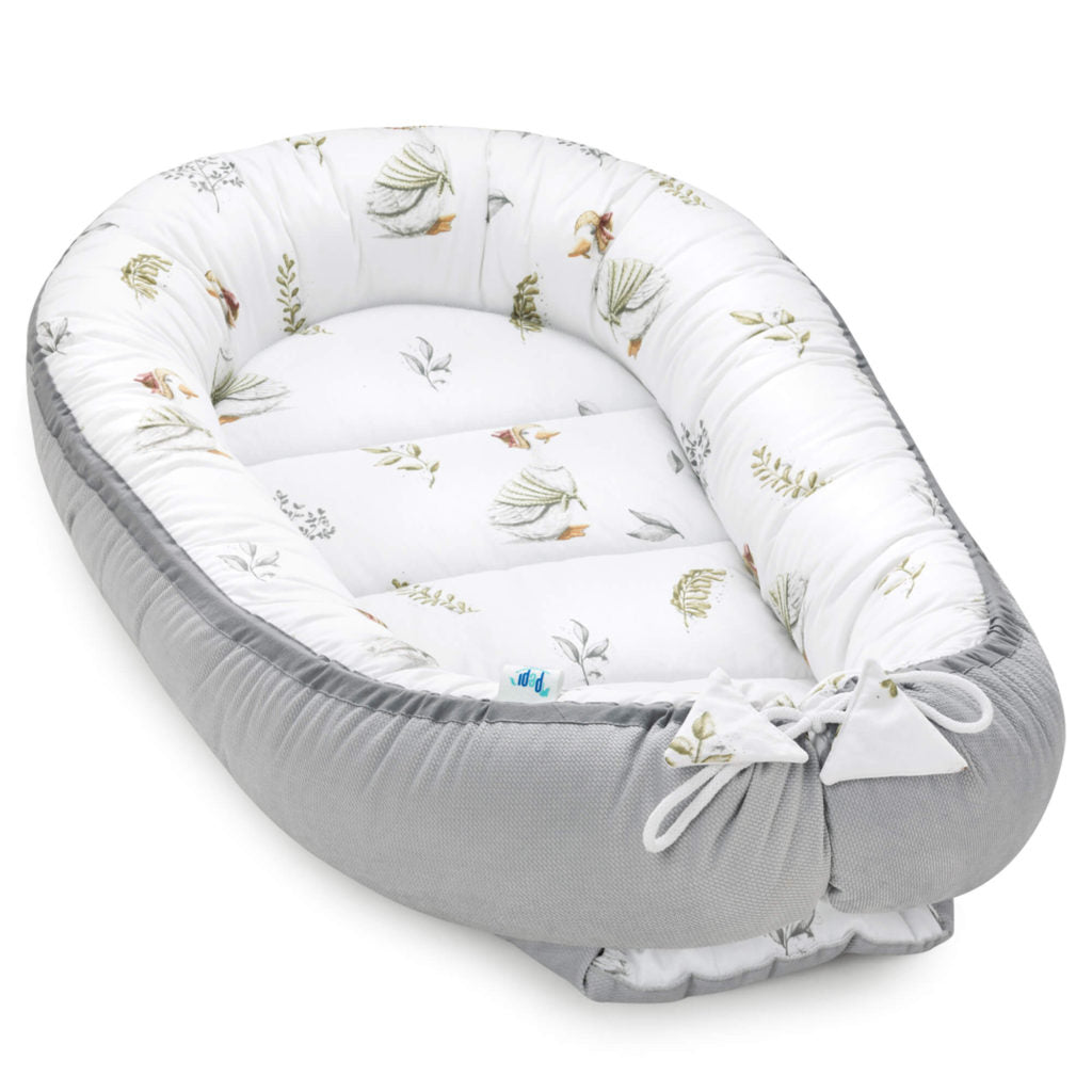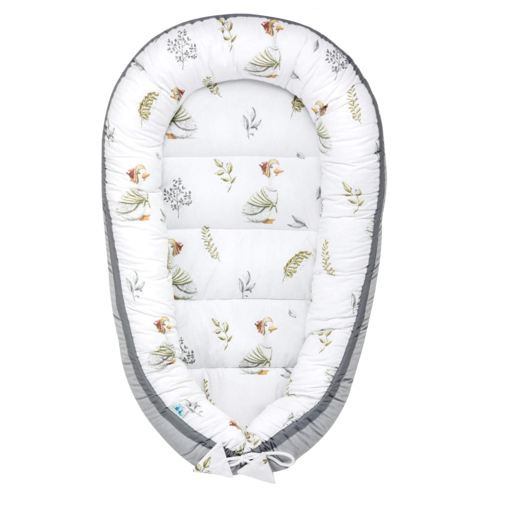 A babafészek egy kényelmes és biztonságos helyet teremt a csecsemő számára, megvédve őt a kiságy kemény elemétől, és minimalizálva a fulladás vagy összenyomódás kockázatát a szülőkkel való közös alvás során. A fészek puha, megemelt oldalai megkönnyítik a gyermek oldalra fektetését, ami különösen fontos a bukás esetén. A fészek kétoldalas kialakítása lehetővé teszi a megjelenés egyszerű megváltoztatását, így esztétikáját saját preferenciáihoz vagy a gyerekszoba berendezéséhez igazíthatja.