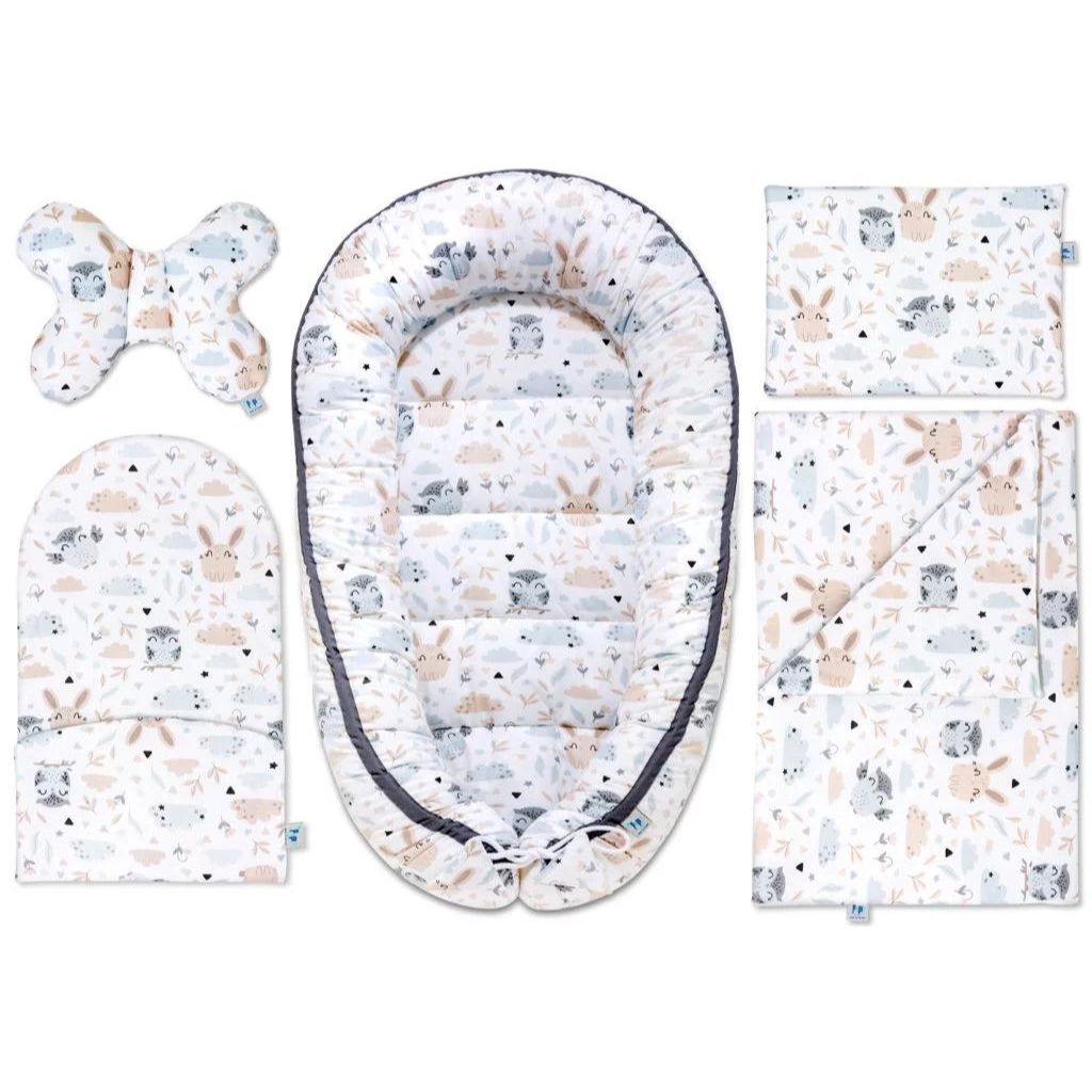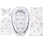 Minden leendő anya arról álmodik, hogy ideális, biztonságos és gyönyörű környezetet teremt gyermekének. Az 5az1-ben szettünk ezeknek az álmoknak a megvalósulása. Babafészek, párnák, takaró és matrac – minden egyetlen, egységes mintában, amely tökéletesen illeszkedik a szoba berendezésébe. Érezd, ahogy minden pillantásra ezen a szetten a nyugalom és az öröm hulláma önt el. Többé nem kell aggódnod a különböző kelengye elemek összeillesztése miatt – minden, ami a legfontosabb, egyetlen, harmonikus szettben van.