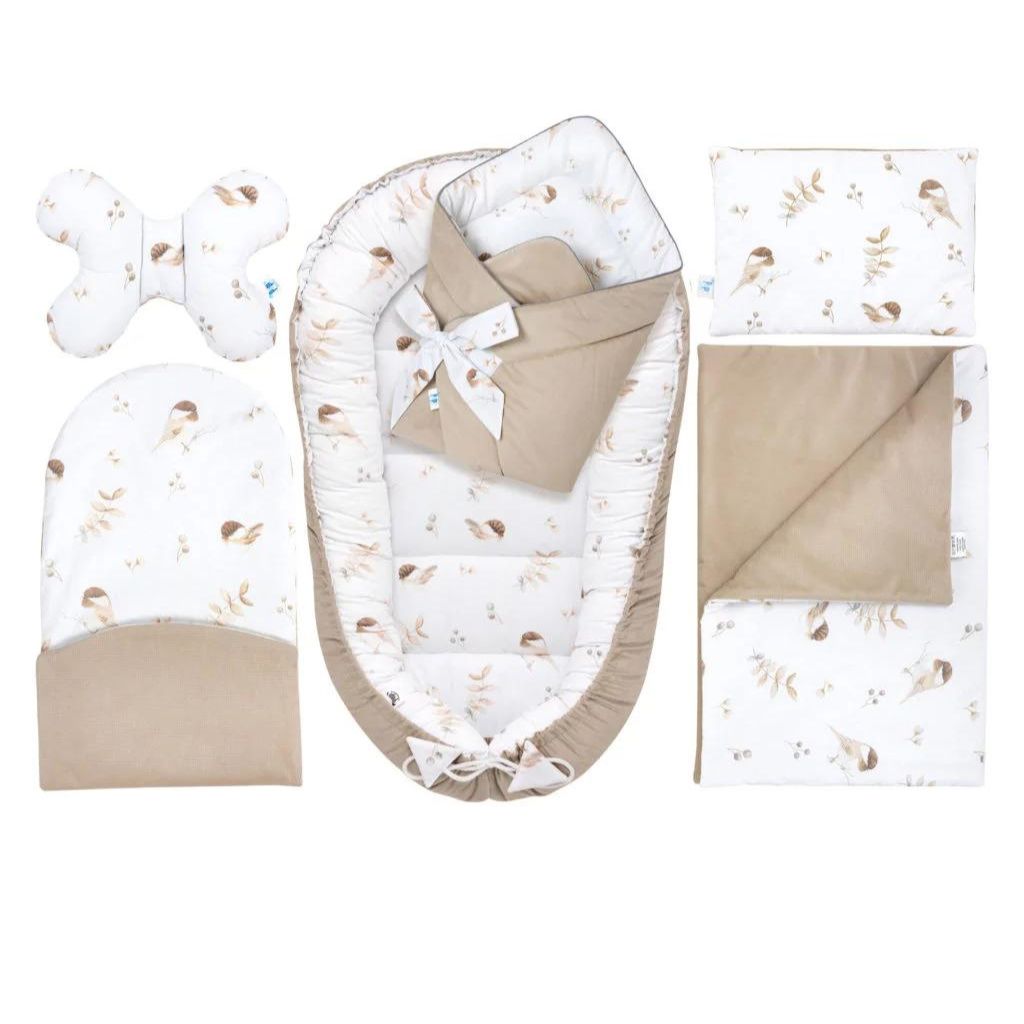 Baba szett 6 az 1-ben - Lovely Bird cappucino - pamut/velvet