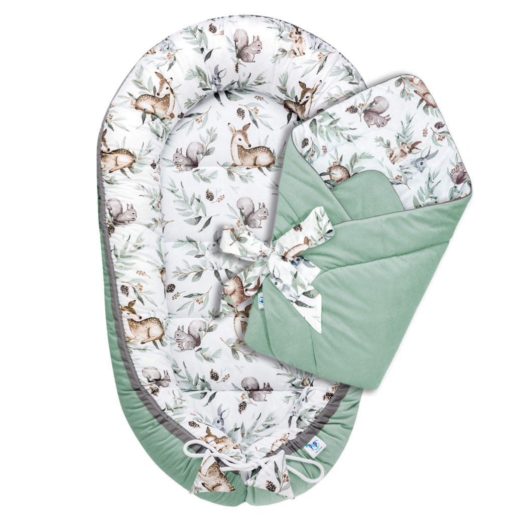 Babafészek és pólya szett - Green Groove - pamut/velvet