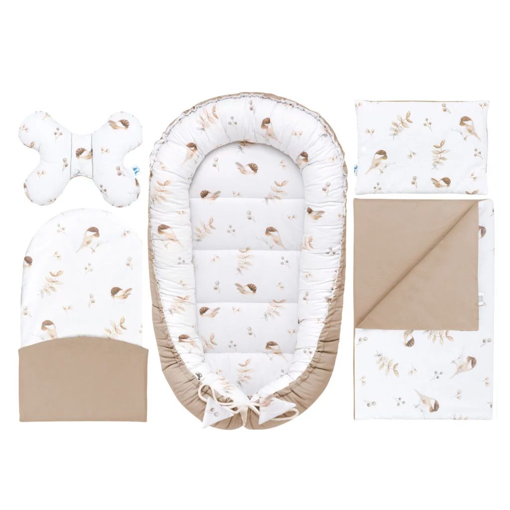 Baba szett 5 az 1-ben - Lovely Bird cappucino - pamut