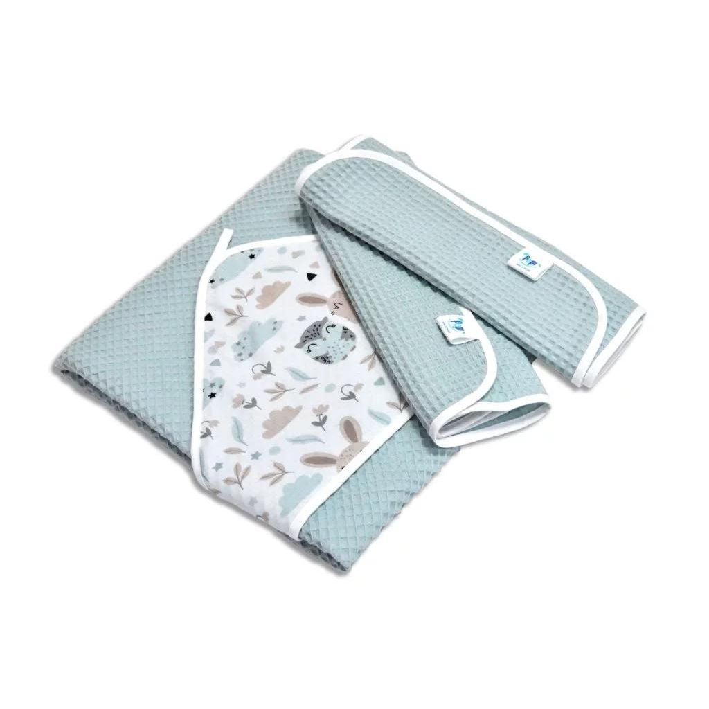 Fantasztikus fürdőszett gyerekeknek, amely egész évben nélkülözhetetlen kiegészítő, ideális nemcsak otthoni fürdés után, hanem az uszodában vagy a strandon is. A muszlin kapucni és a puha, természetes, gofri szerkezetű anyag a hagyományos fürdőköpenyt egyben praktikus pólyává is teszi.