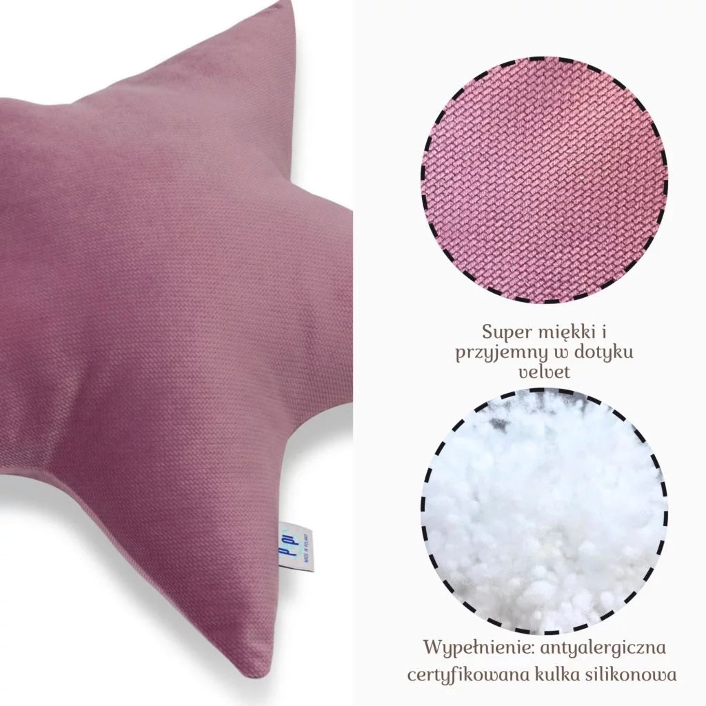A csillag alakú díszpárna a puhaság és a kellemesség kvintesszenciája, finom és kellemes tapintású velvetből készült.