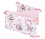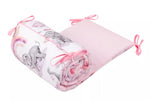Biztosítsd kisbabádnak a legbiztonságosabb és legkuckósabb alvóhelyet! Ez a kézzel varrott rácsvédő (180x30 cm) tanúsított anyagokból garantálja a nyugodt alvást és védelmet nyújt a kiságy kemény részeivel való véletlen ütközések ellen, valamint megakadályozza, hogy a kezek vagy lábak becsússzanak a rácsok közé alvás vagy aktív játék közben. Három stabil részből áll, hosszú megkötőkkel, ami biztosítja a tökéletes illeszkedést és a könnyű felszerelést.