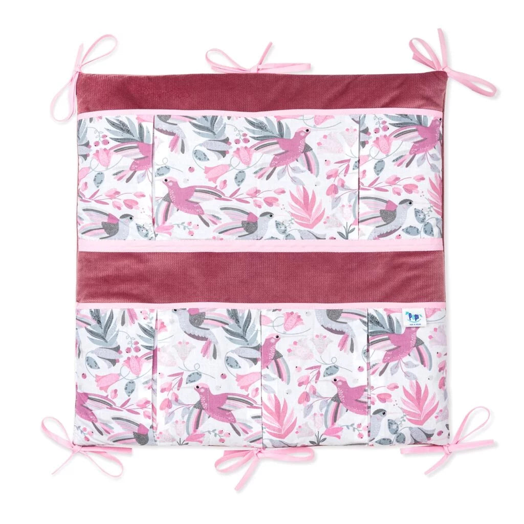 Kiságyra szerelhető tároló 52x52 - Hummingbird old rosa - pamut/velvet