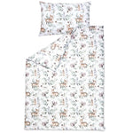 Álmodsz egy gyönyörűen berendezett és hangulatos alvósarokról a kicsidnek, de nincs időd összeillő elemeket keresgélni? A 4 részes ágyneműhuzat-garnitúránk 120x60 cm-es kiságyba egy kész és átgondolt megoldás! Tartalmaz mindent, ami a kezdéshez szükséges: paplanhuzatot (90x120), párnahuzatot (60x40), praktikus lepedőt (60x120) és egy puha rácsvédőt.