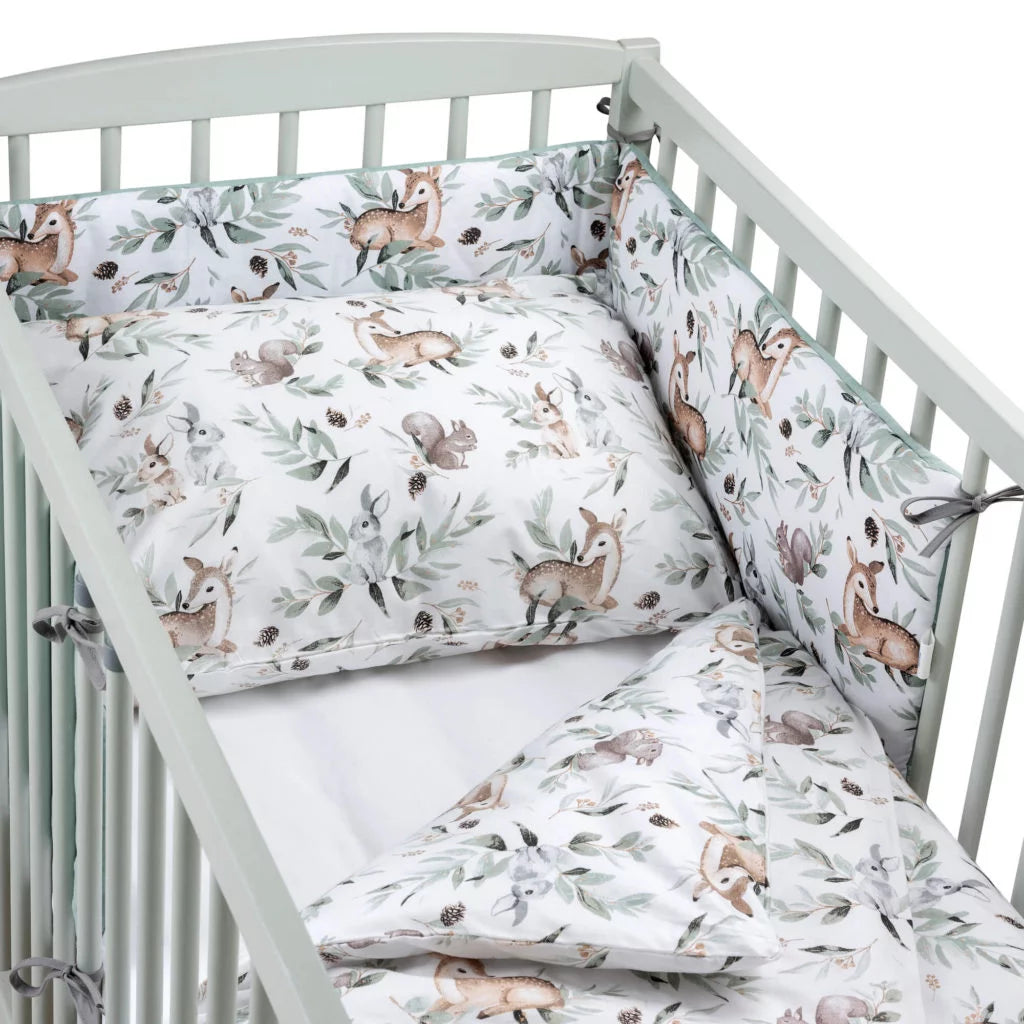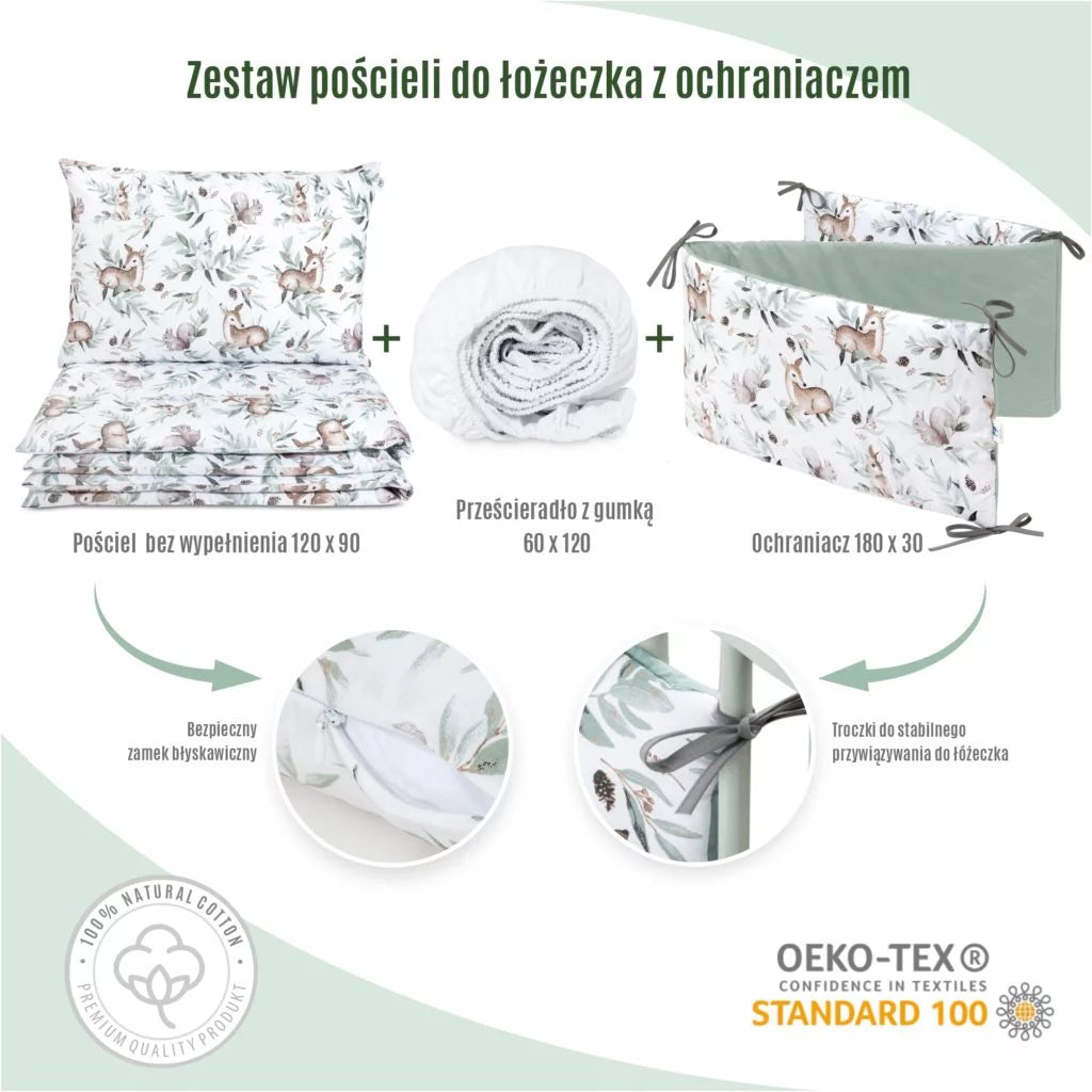 Ágyneműhuzat 4az1-ben - garnitúra kiságyba (90x120) lepedővel és rácsvédővel - Green Groove