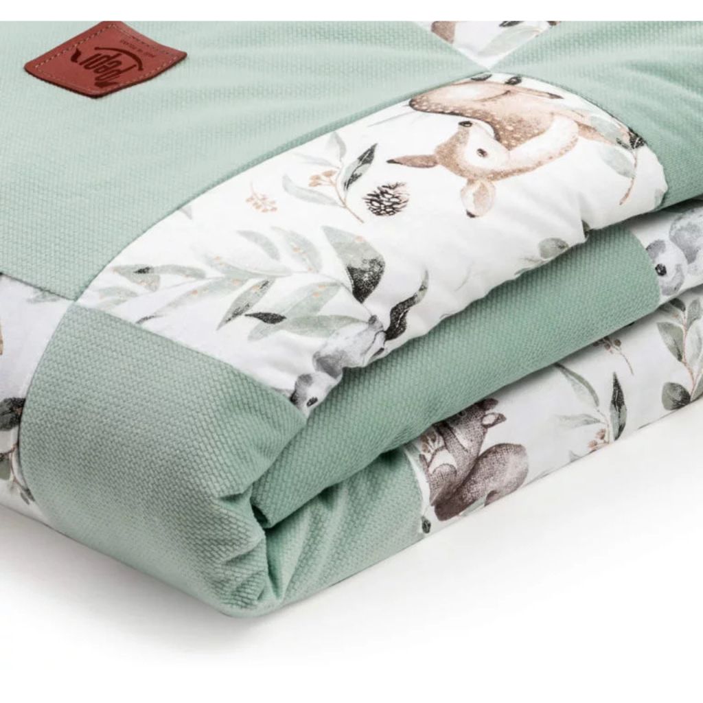 Adj abszolút egyedi jelleget gyermeked szobájának a patchwork szettünkkel! A paplan (100x140 cm) és a biztonságos, lapos párna (40x60 cm) nemcsak a kényelem garanciája, hanem egy egyedi, szinte személyre szabott dekorációs elem is, amely kiemelkedik a tömeggyártott textíliák közül. Minden szett egy megismételhetetlen, szenvedéllyel alkotott kompozíció. A természetes anyagokra, mint a pamut, és a tartósságra helyezzük a hangsúlyt, hogy a lehető leghosszabb ideig szolgáljon titeket, ami tudatos és környezetbarátabb választás.