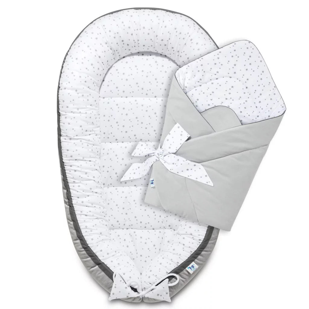 Babafészek és pólya szett - Grey Galaxy - pamut/velvet