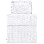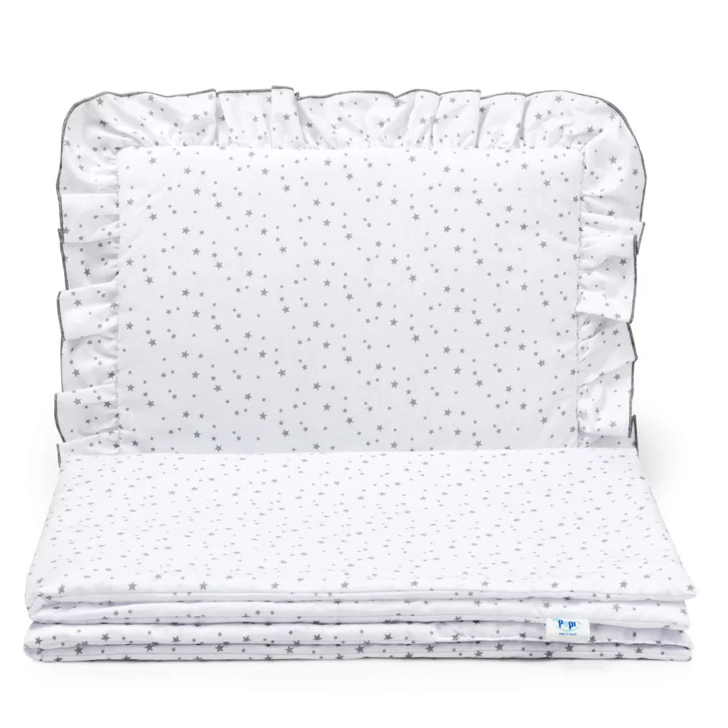 Teremts hangulatos és stílusos helyet a kicsidnek a bájos, fodros ágynemű szettünkkel. Ideális babakocsiba és kiságyba, kényelmet, meleget és esztétikus megjelenést biztosít.