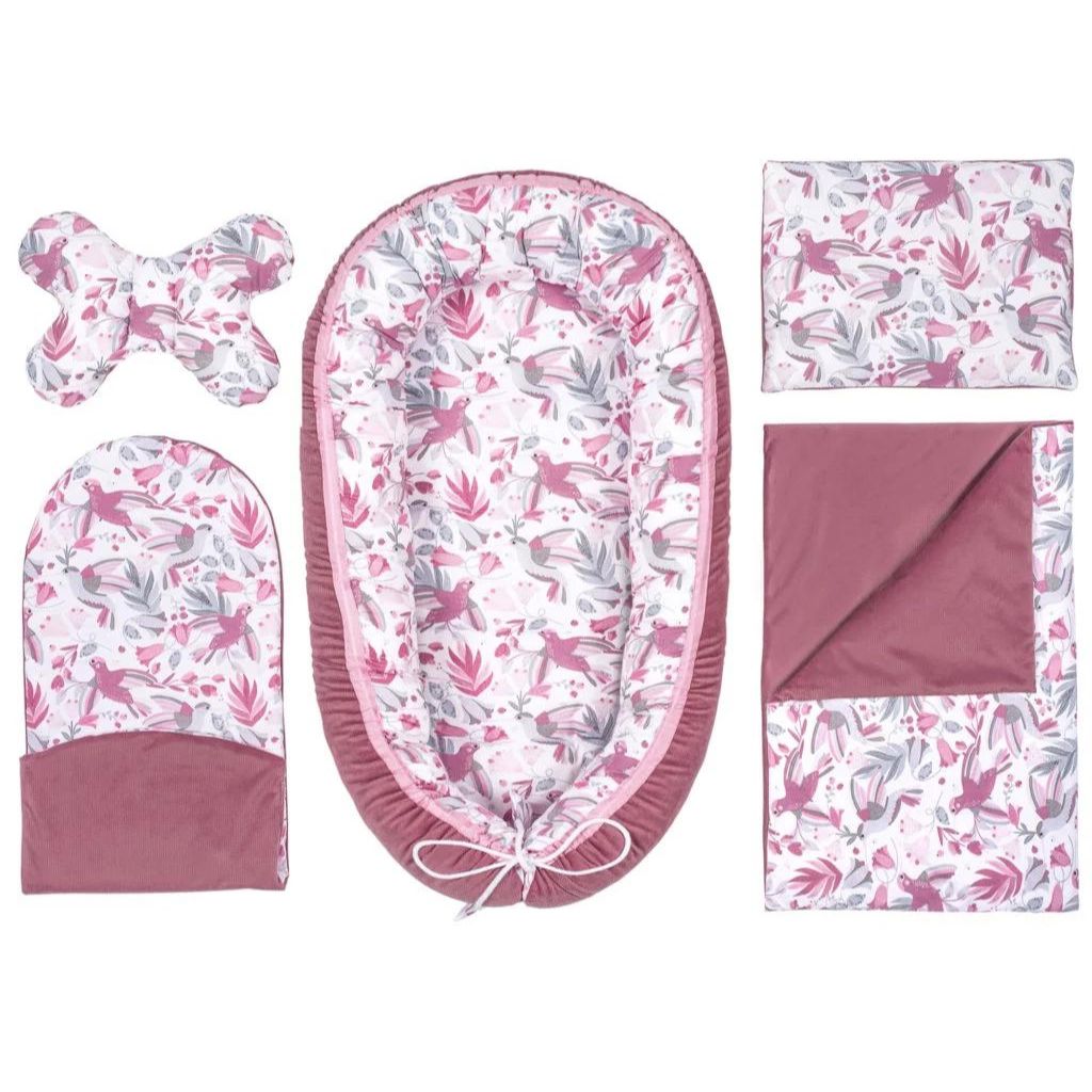 Baba szett 5 az 1-ben - Hummingbird old rosa - pamut/velvet