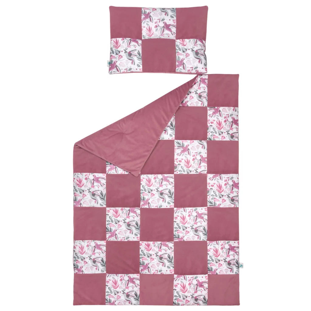 Patchwork paplan 100x140 lapos párnával 40x60 - Hummingbird old rosa - pamut/velvet