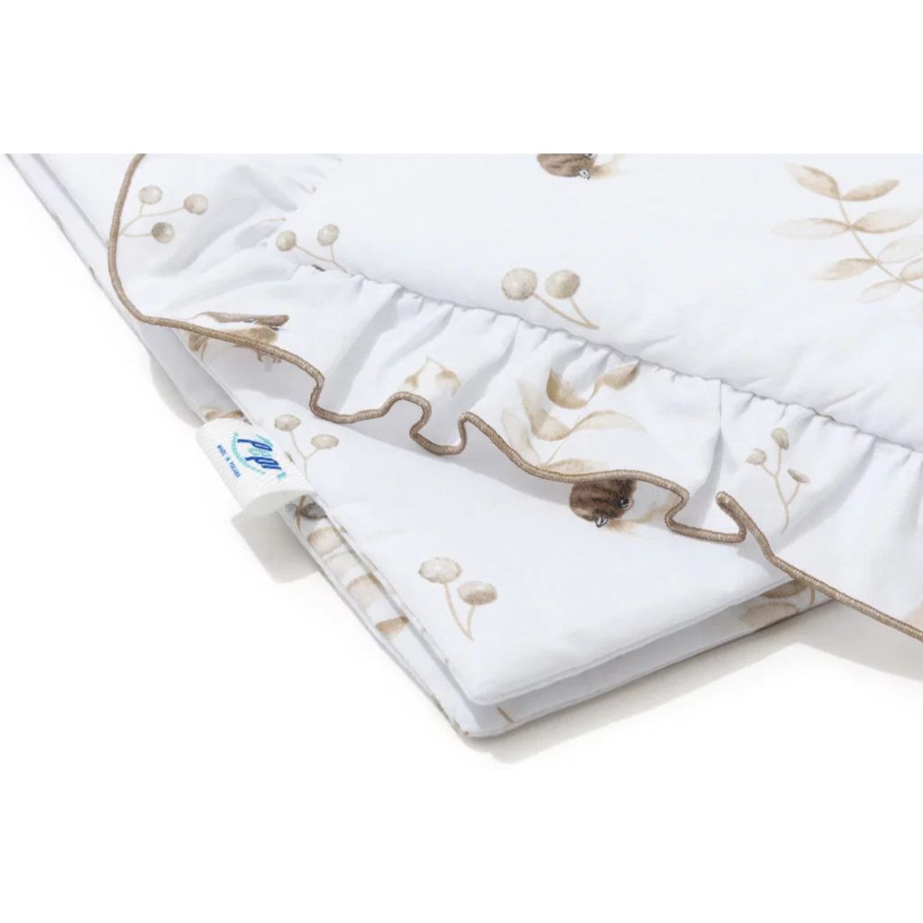 Teremts hangulatos és stílusos helyet a kicsidnek a bájos, fodros ágynemű szettünkkel. Ideális babakocsiba és kiságyba, kényelmet, meleget és esztétikus megjelenést biztosít.