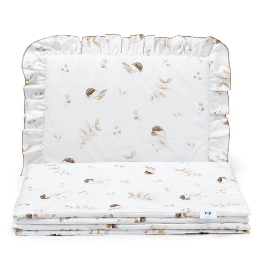 Fodros ágynemű szett párna 30×40 cm és 75x100 cm-es takaró - Lovely Bird - pamut