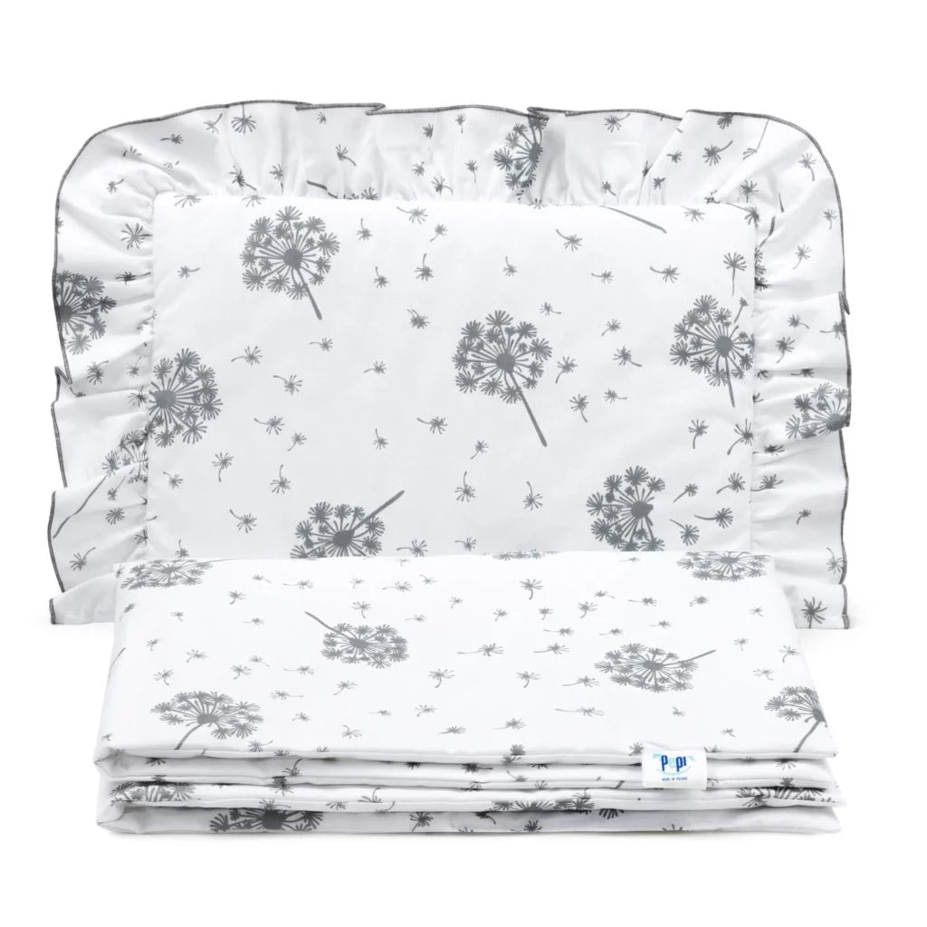 Teremts hangulatos és stílusos helyet a kicsidnek a bájos, fodros ágynemű szettünkkel. Ideális babakocsiba és kiságyba, kényelmet, meleget és esztétikus megjelenést biztosít.