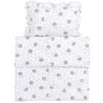 A kiságyba való ágyneműgarnitúra 100% pamutból készült, kiváló antiallergén valamint antibakteriális tulajdonságokkal. Ez az anyag meleget biztosít, ugyanakkor lehetővé teszi a kicsi bőrének szabad lélegzését, kiküszöbölve a túlmelegedés kockázatát. Az ágynemű biztonságos cipzárral van ellátva, amely megfelelően takart, hogy nyugodt alvást és kényelmet biztosítson a legfiatalabb felhasználónak.