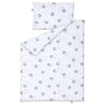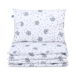 A kiságyba való ágyneműgarnitúra 100% pamutból készült, kiváló antiallergén valamint antibakteriális tulajdonságokkal. Ez az anyag meleget biztosít, ugyanakkor lehetővé teszi a kicsi bőrének szabad lélegzését, kiküszöbölve a túlmelegedés kockázatát. Az ágynemű biztonságos cipzárral van ellátva, amely megfelelően takart, hogy nyugodt alvást és kényelmet biztosítson a legfiatalabb felhasználónak.