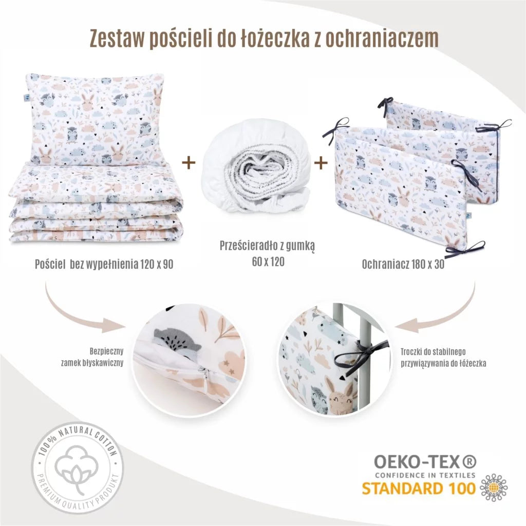 Ágyneműhuzat 4az1-ben - garnitúra kiságyba (90x120) lepedővel és rácsvédővel - Forest Friends