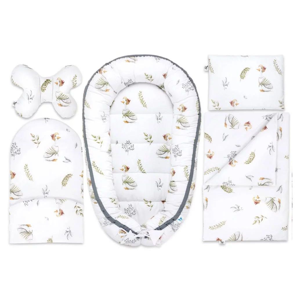 Minden leendő anya arról álmodik, hogy ideális, biztonságos és gyönyörű környezetet teremt gyermekének. Az 5az1-ben szettünk ezeknek az álmoknak a megvalósulása. Babafészek, párnák, takaró és matrac – minden egyetlen, egységes mintában, amely tökéletesen illeszkedik a szoba berendezésébe. Érezd, ahogy minden pillantásra ezen a szetten a nyugalom és az öröm hulláma önt el. Többé nem kell aggódnod a különböző kelengye elemek összeillesztése miatt – minden, ami a legfontosabb, egyetlen, harmonikus szettben van.