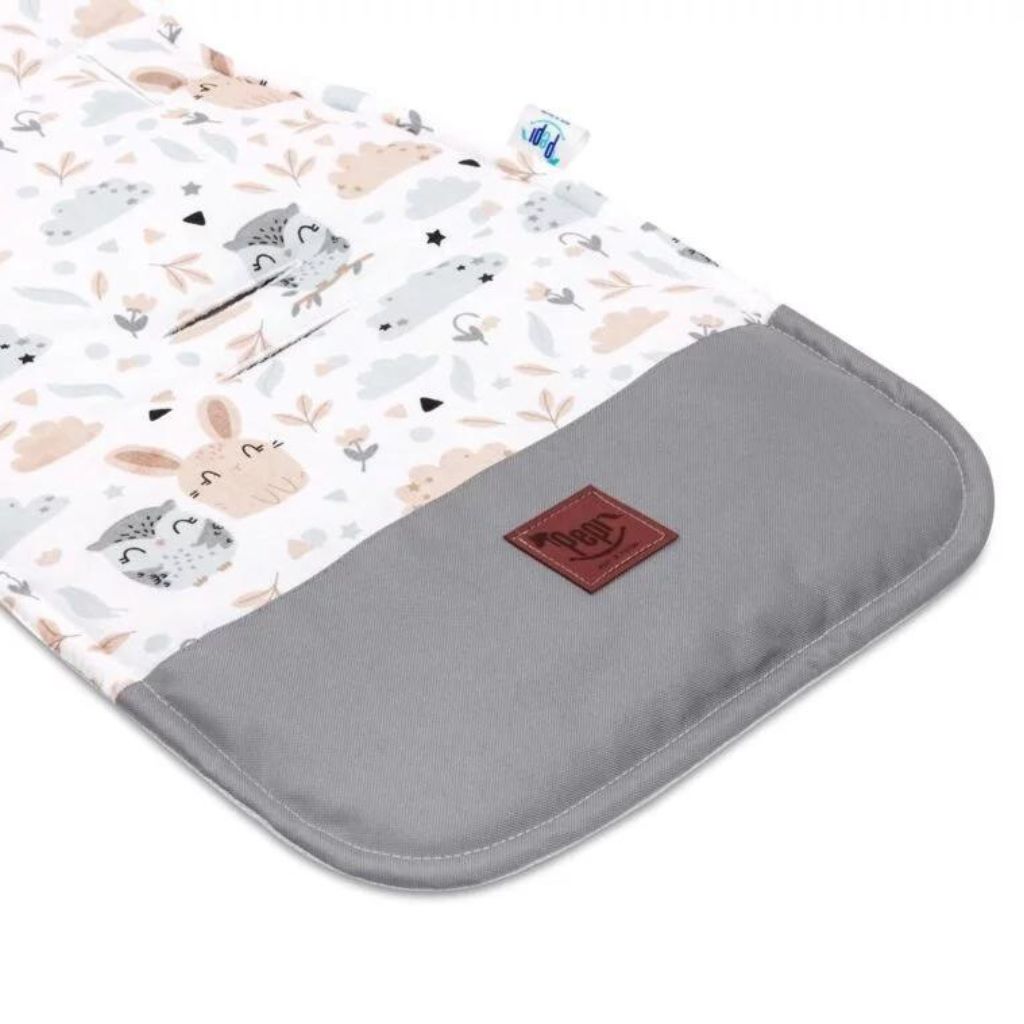 A betét egyik oldala 100% pamutból készült, ami megakadályozza a gyermek bőrének izzadását, tökéletesen felszívva a vizet és az izzadságot. A másik oldala bársonyos tapintású velvet, ideális a hűvösebb napokra.