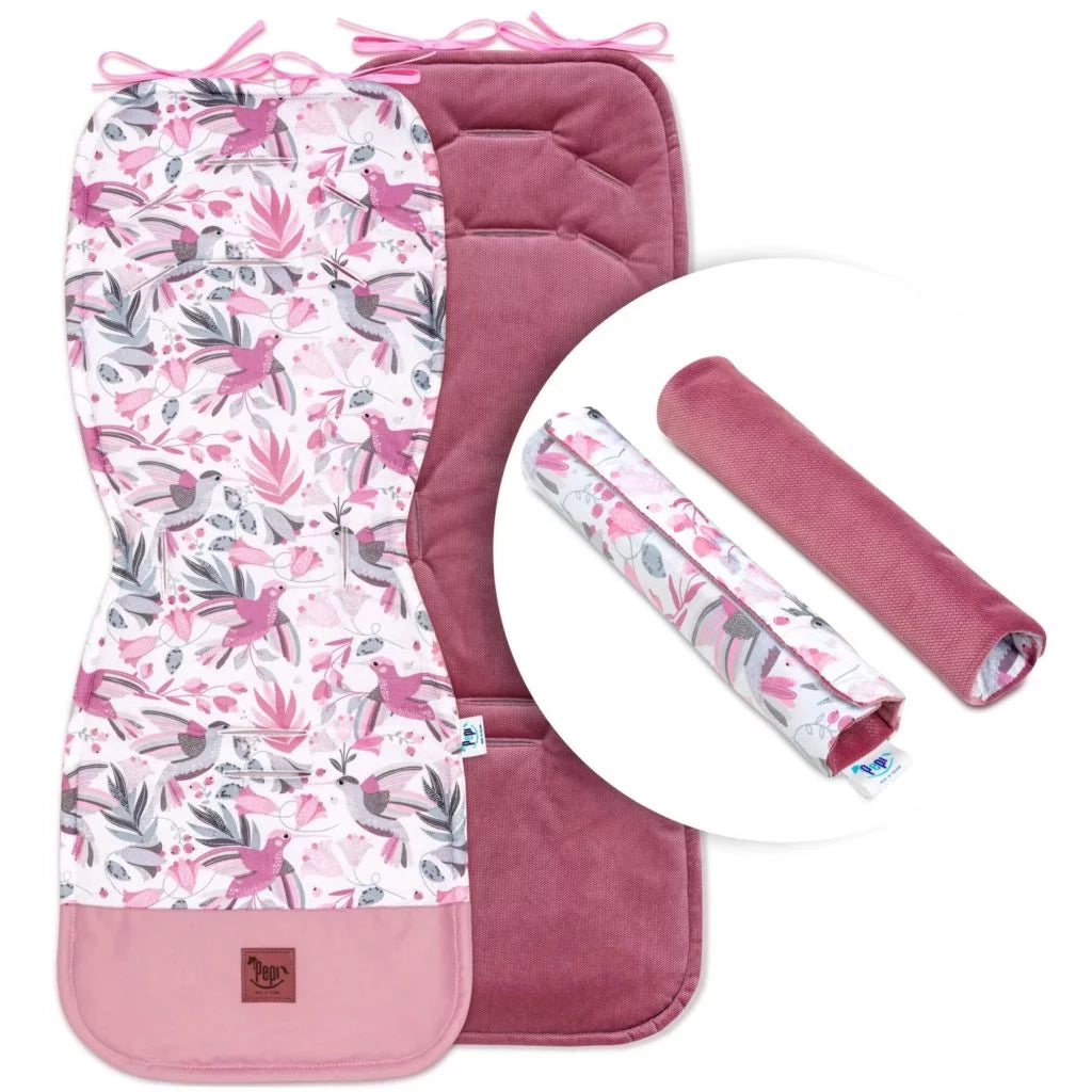 Babakocsi betét övvédőkkel - Hummingbird old rosa - pamut/velvet