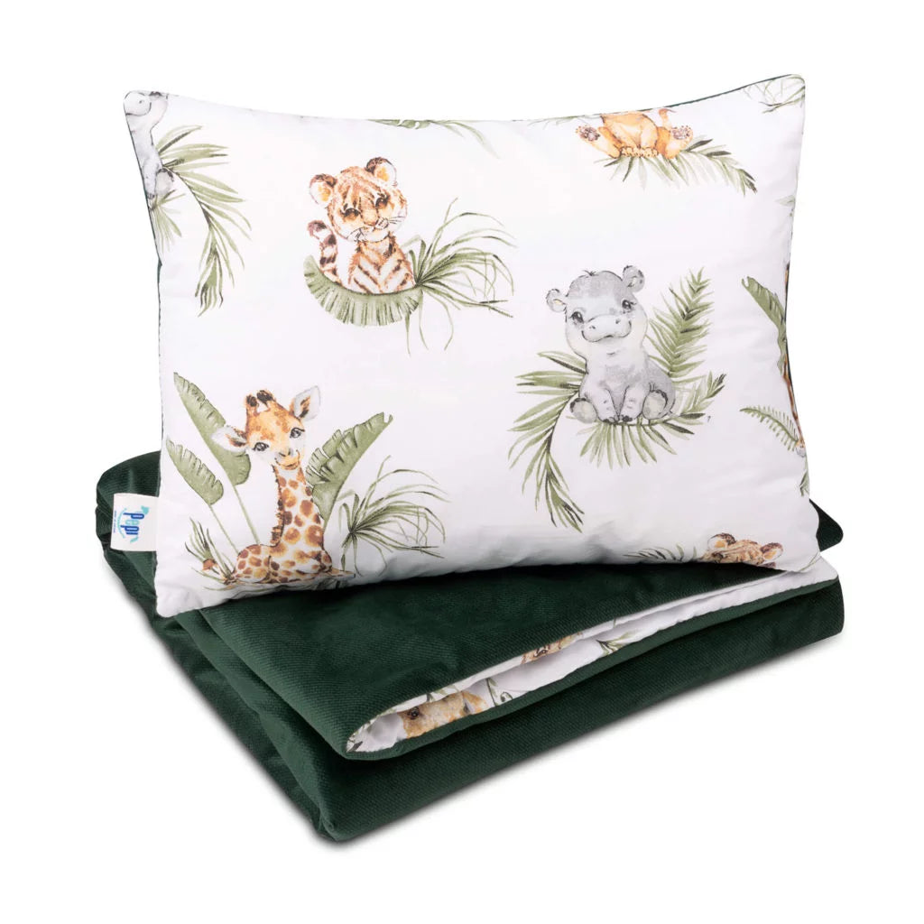 Különleges szett: takaró (75x100 cm) és párna (30x40 cm), amelyeket a Te kisbabád igényeit szem előtt tartva hoztunk létre. Egyik oldala minősített, légáteresztő pamutból, a másik pedig bársonyosan puha velvetből készült – ez a sokoldalúság, a melegség és a rendkívüli lágyság garanciája.