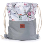 A tornazsák mérete lehetővé teszi A4-es formátumú dokumentumok tárolását. Strapabíró, kiváló minőségű anyagból készült, amely nem bolyhosodik és vízálló. A belső rész vízálló béléssel van ellátva, a hátizsák pedig vastag, állítható pamut zsinórral záródik, és erős fogantyúkkal van felszerelve a kényelmes hordozás érdekében.