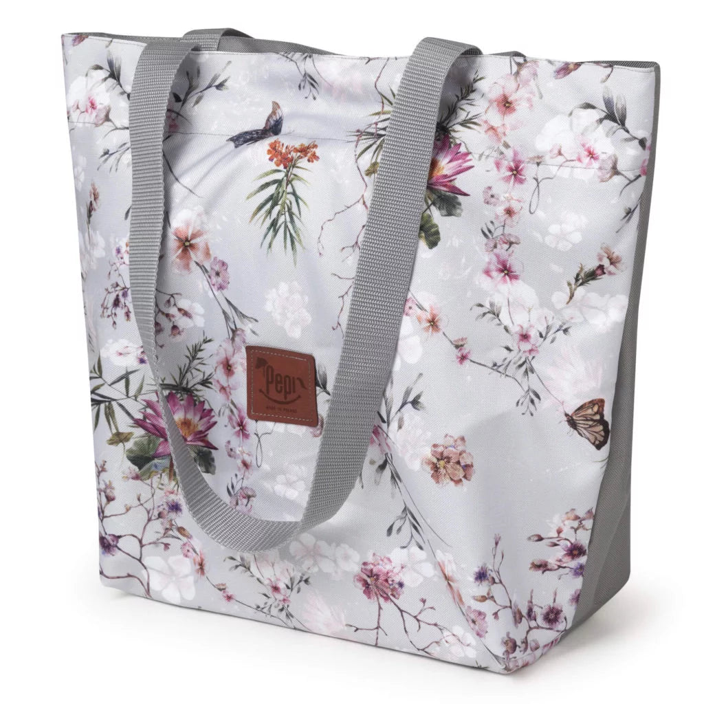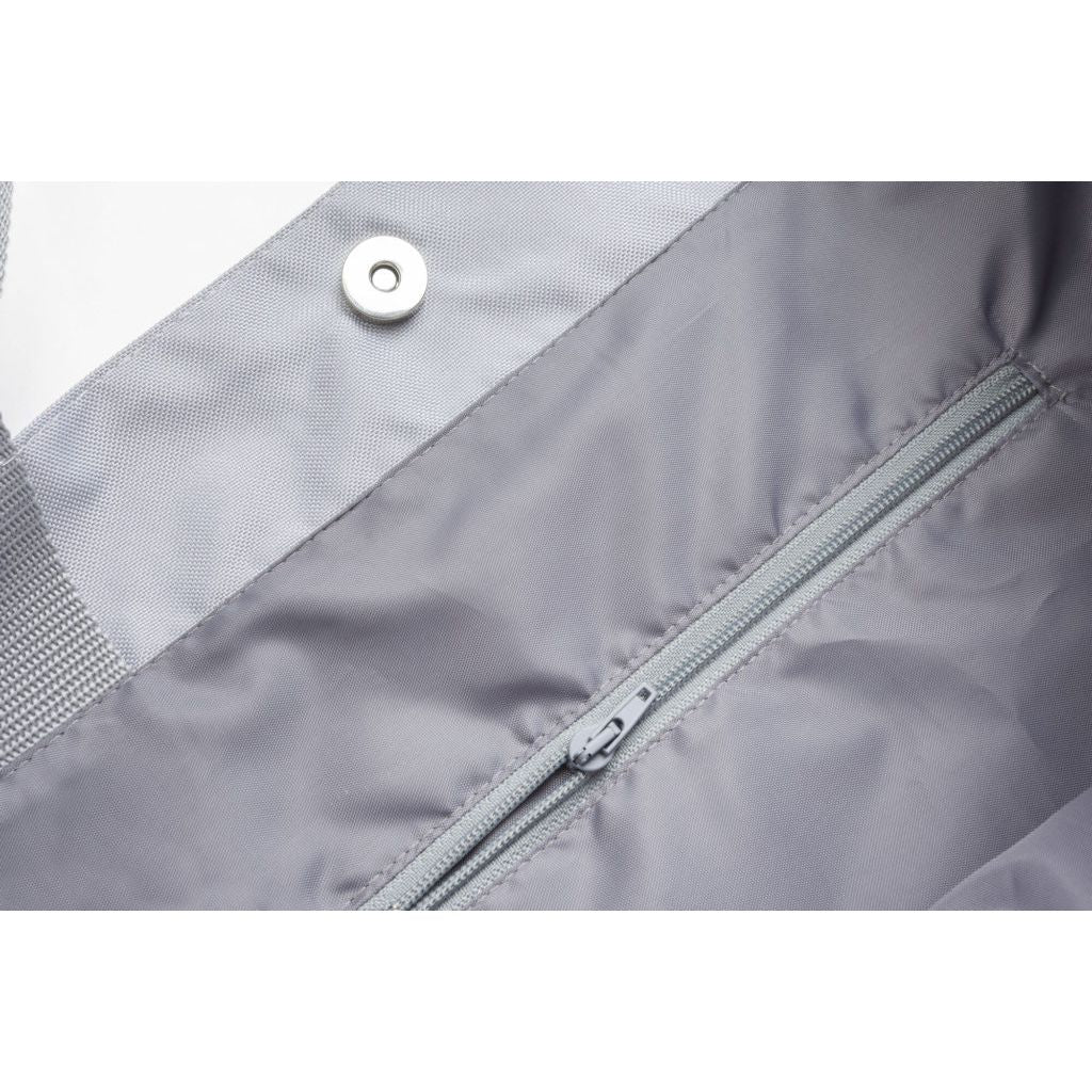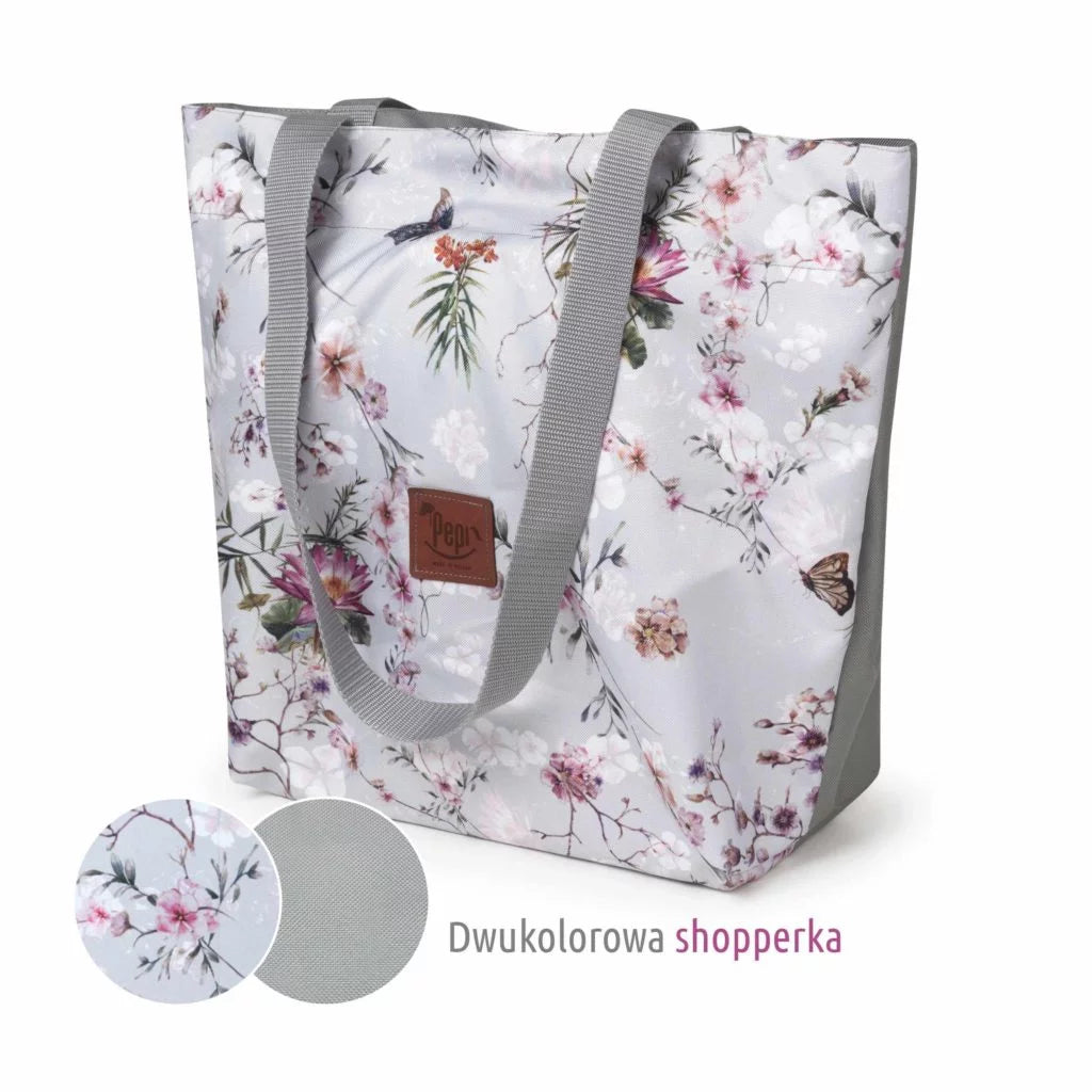 A vállra akasztható shopper táska, mérete 44x34x8 cm (+-1 cm), vízálló anyagból készült. A patentos záródás biztosítja a tartalom biztonságát, míg a belső cipzáras zseb megkönnyíti a kisebb tárgyak rendszerezését.