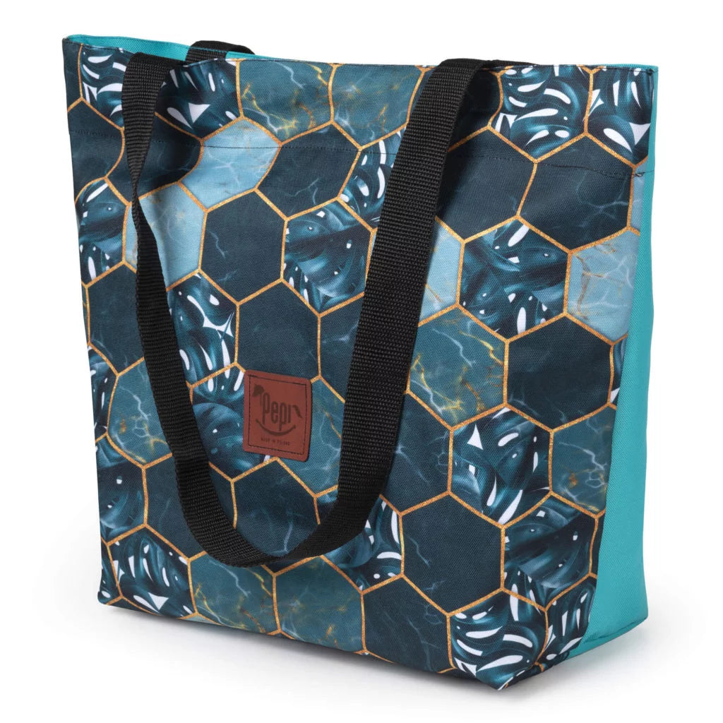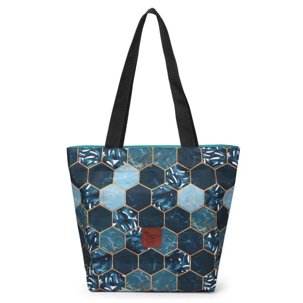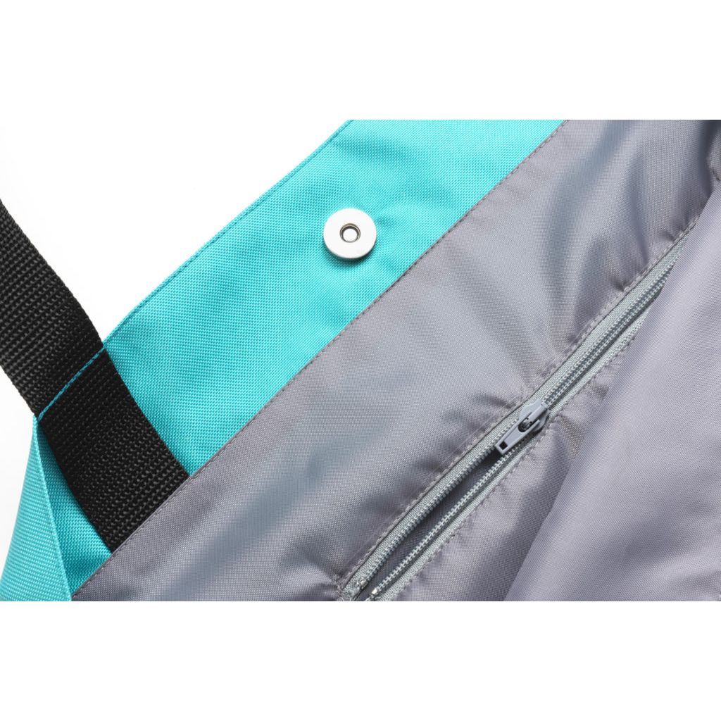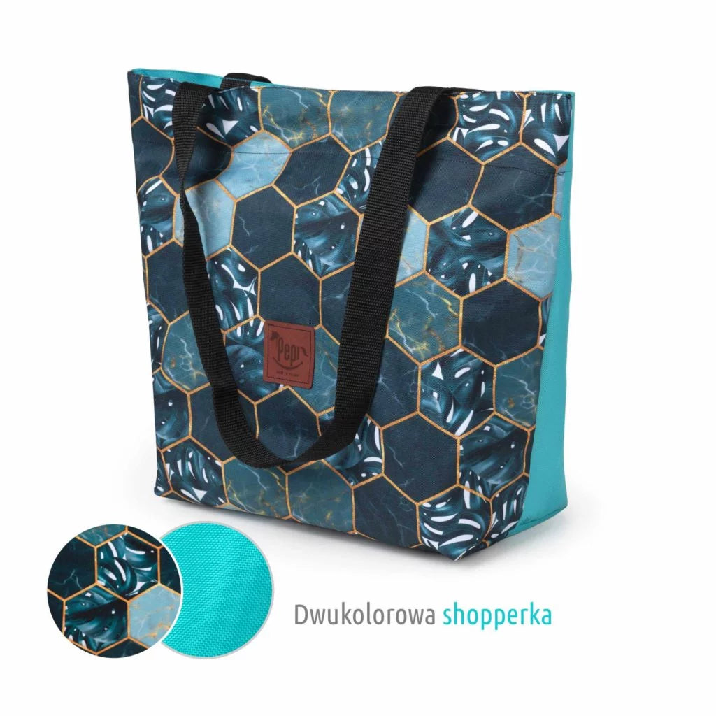 A vállra akasztható shopper táska, mérete 44x34x8 cm (+-1 cm), vízálló anyagból készült. A patentos záródás biztosítja a tartalom biztonságát, míg a belső cipzáras zseb megkönnyíti a kisebb tárgyak rendszerezését.